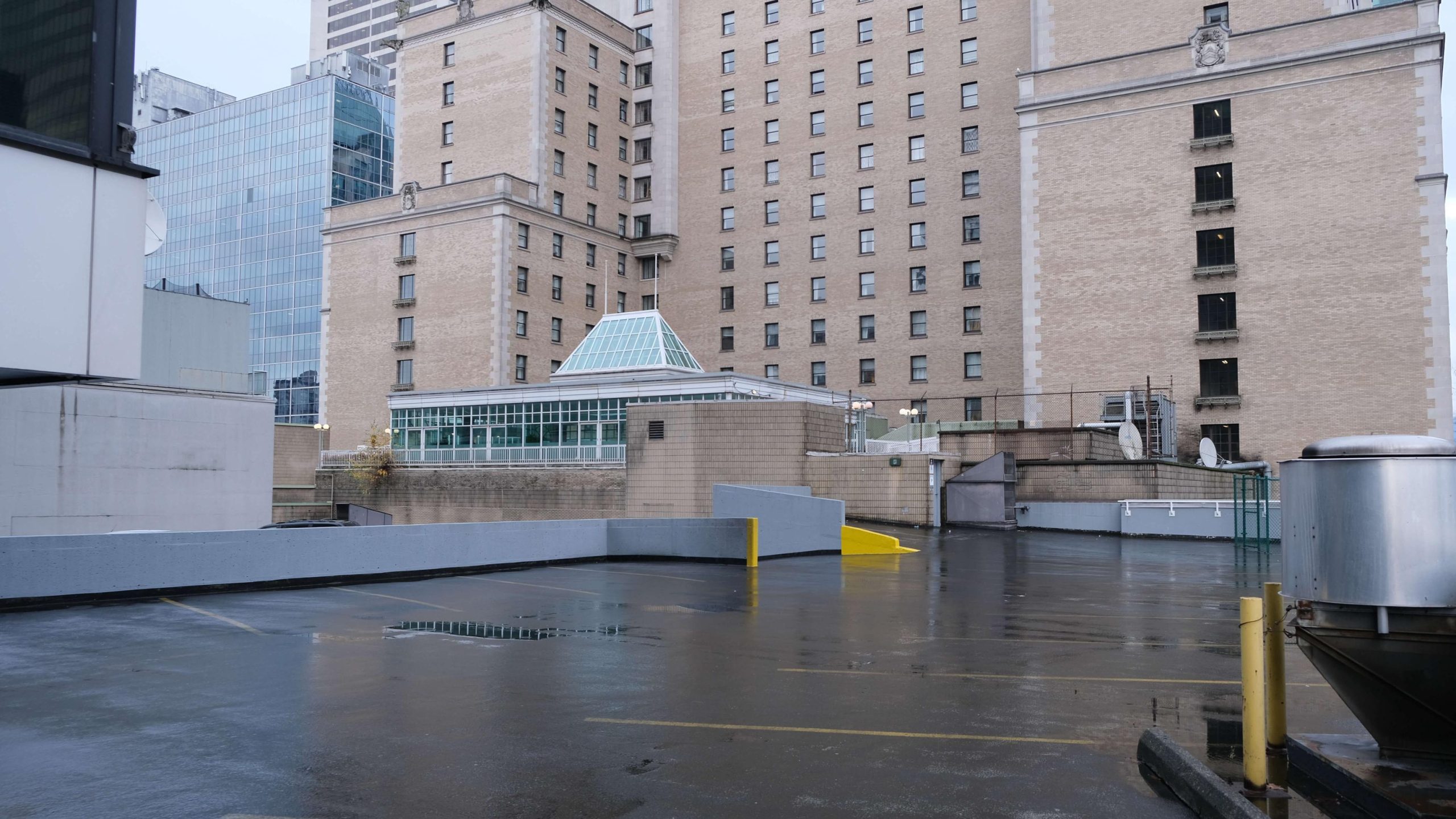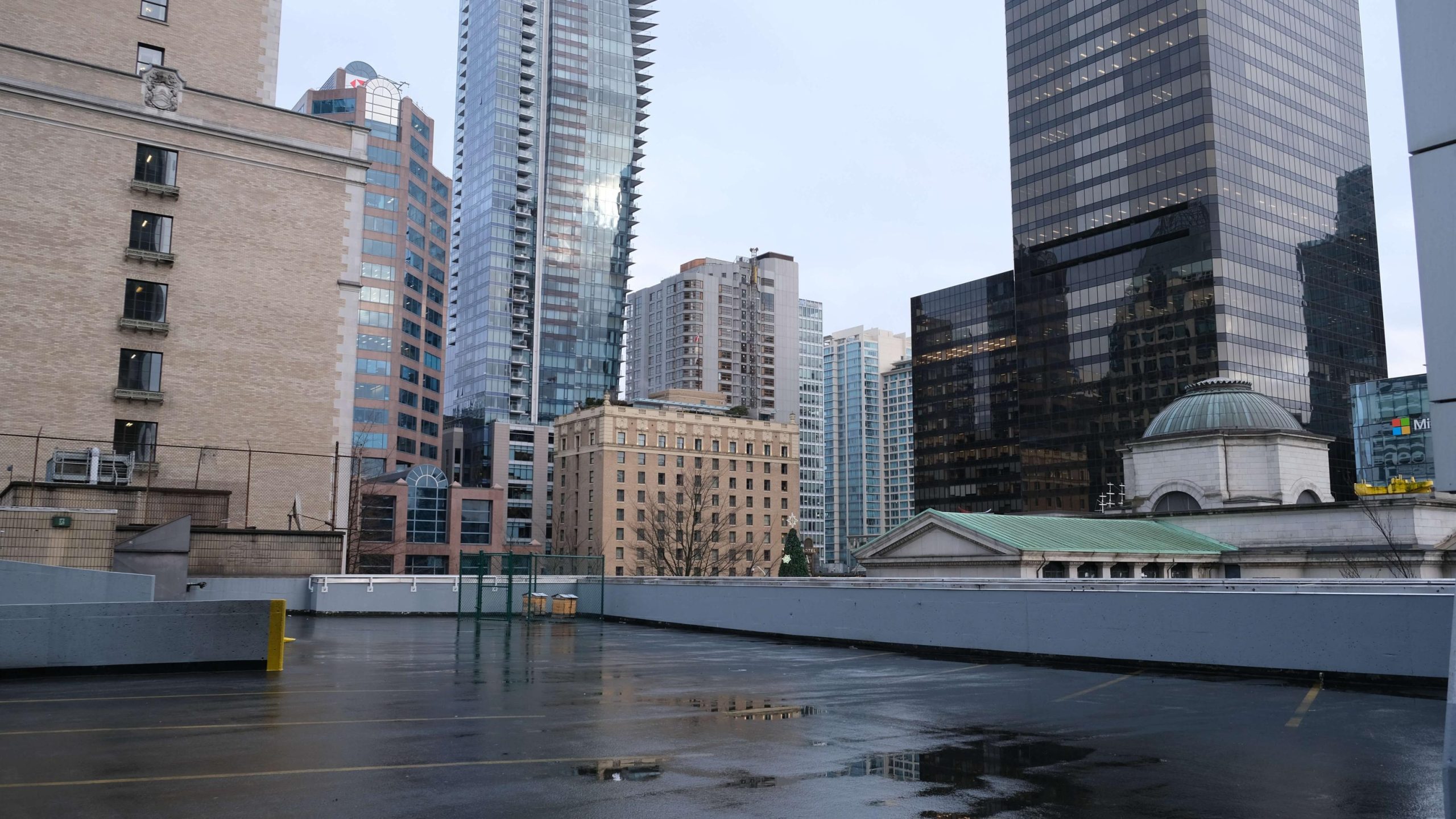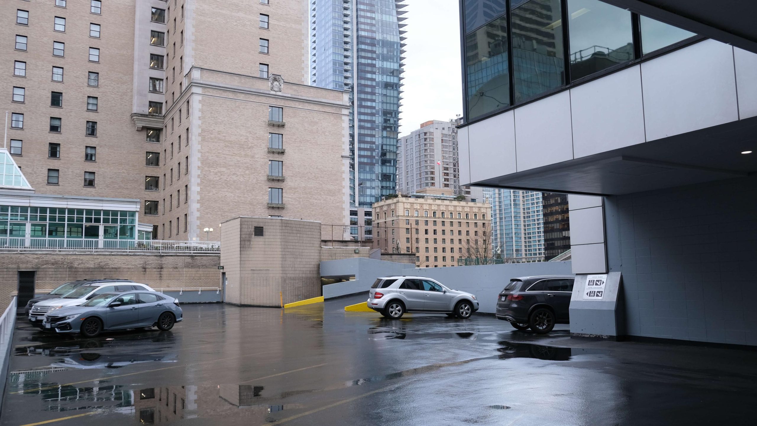 20 storey complex with rooftop parking and lobby availability located at the corner of Hornby and Robson Street.