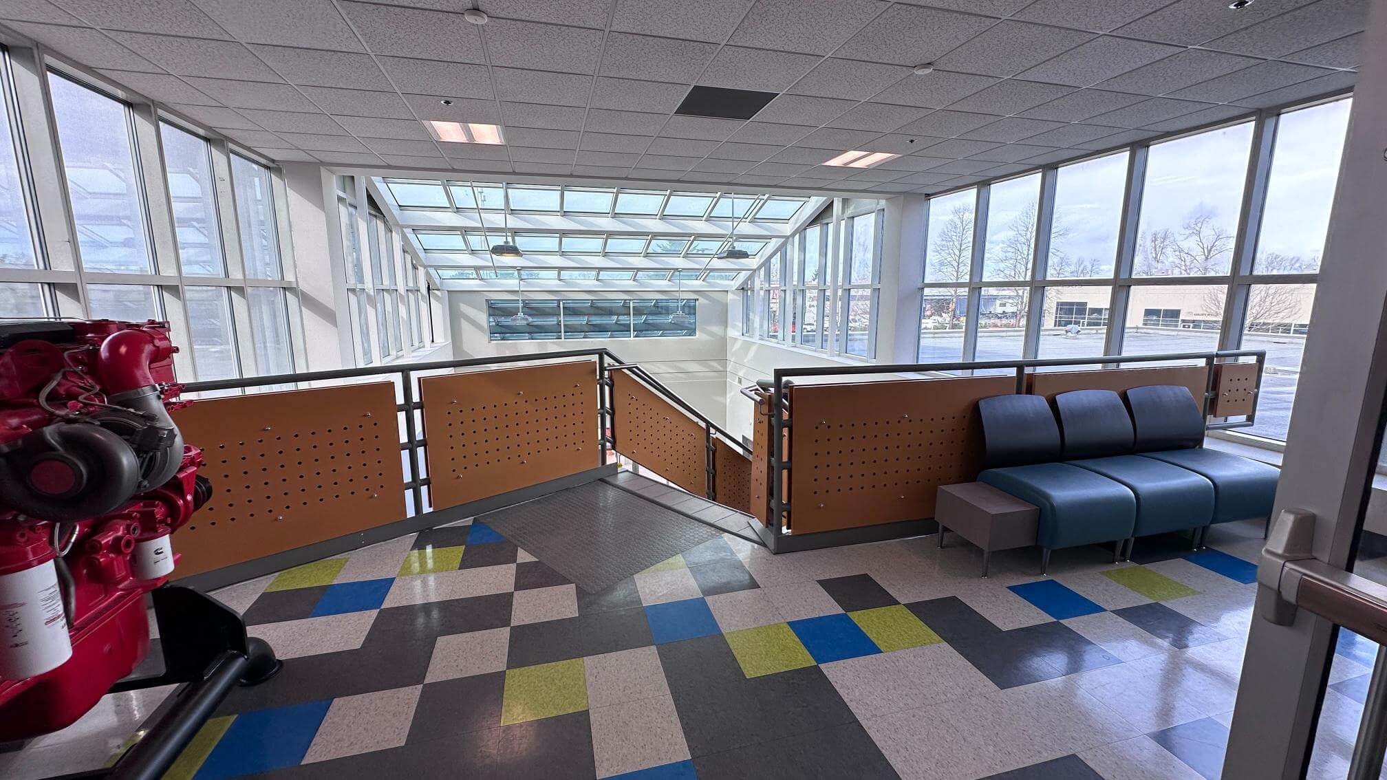 142,000 sq ft motive power campus featuring truck and machine shops, outdoor railway training track, classrooms, 120-ton MAN Engine, lobby and conference rooms