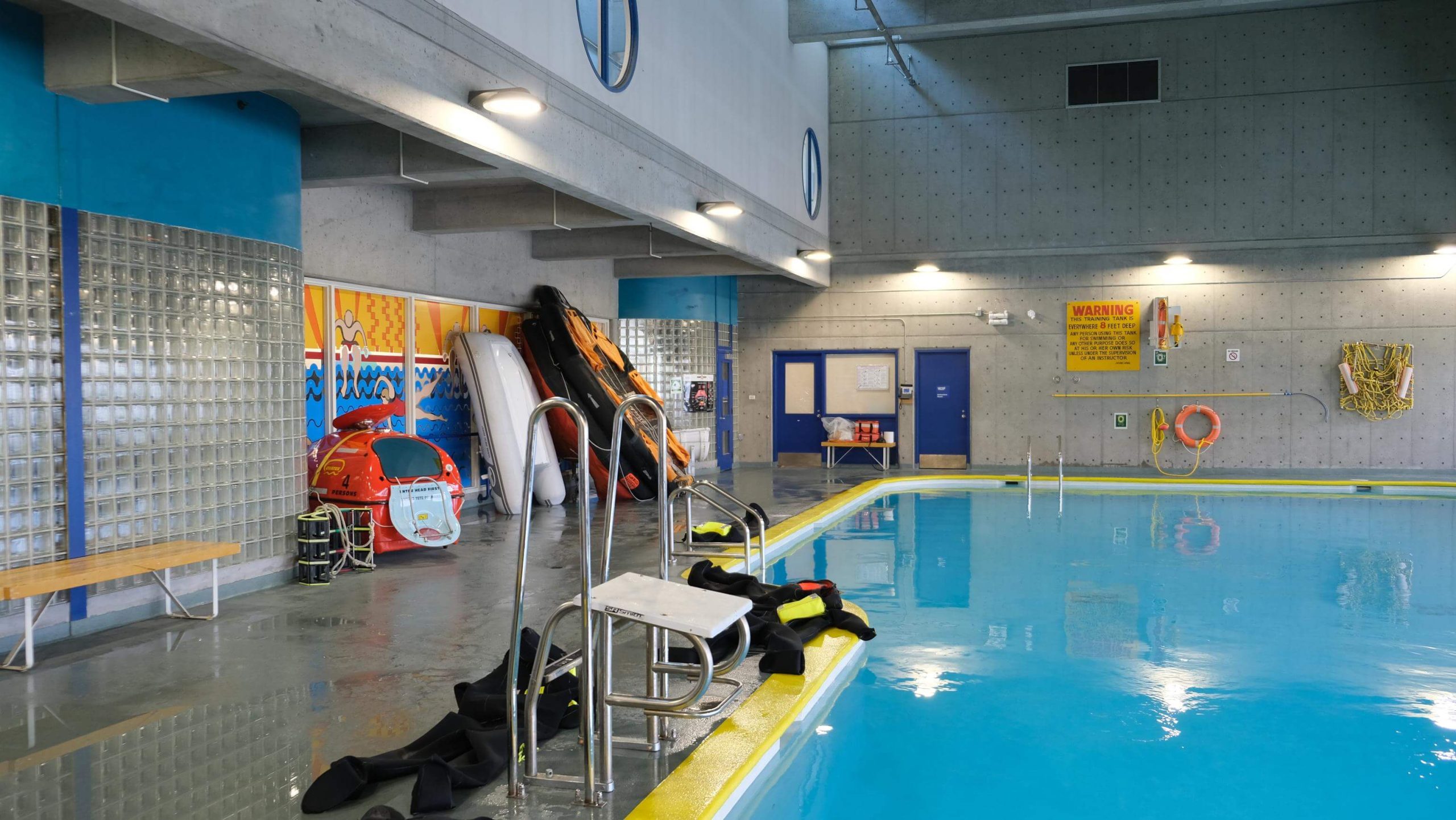 The campus features a training tank, cafeteria, simulator rooms & classrooms. Low impact filming allowed during school hours. Evenings and weekends also available.